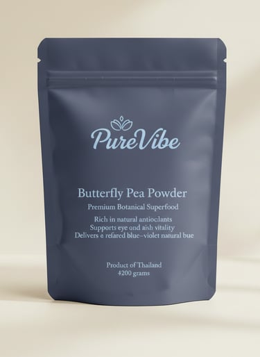 PureVibe Butterfly Pea Flower Elegantly vibrant, naturally rich in antioxidants, and crafted to elevate every wellness ritual — PureVibe brings premium purity to the world, perfectly refined for export.